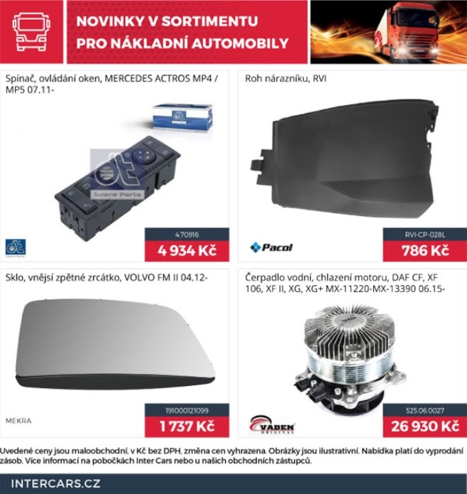 Firma Inter Cars rozšiřuje svůj sortiment pro nákladní vozy. Najdete zde například roh nárazníku či vodní čerpadlo.